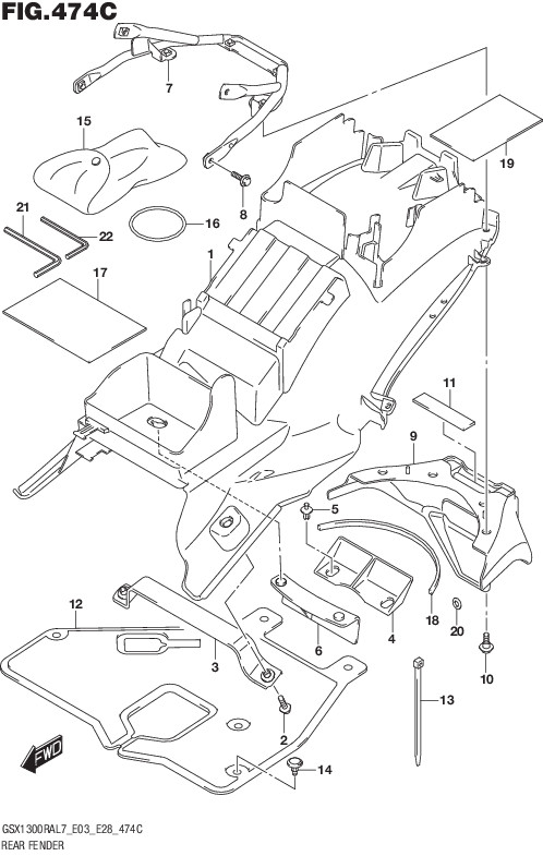 2014 Suzuki GSX1300R,AZ REAR FENDER BRACKET, REAR FENDER